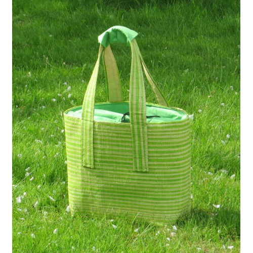 Färger: Väv av kombinationen anisgrönt + naturvitt. Foder och dragsko-stängning av grönt bomullstyg (se foto).