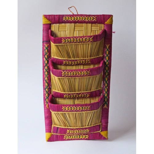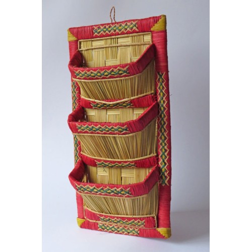 Väggkorg med tre fickor placerade under varandra. Väggkorgen är mycket dekorativ och praktisk att hänga på väggen i t ex kök, kontor eller badrum. Varje ficka har bredd à 16 cm och ett djup à 10cm. Väggkorgens totala höjd är 41cm och bredden är 22cm.